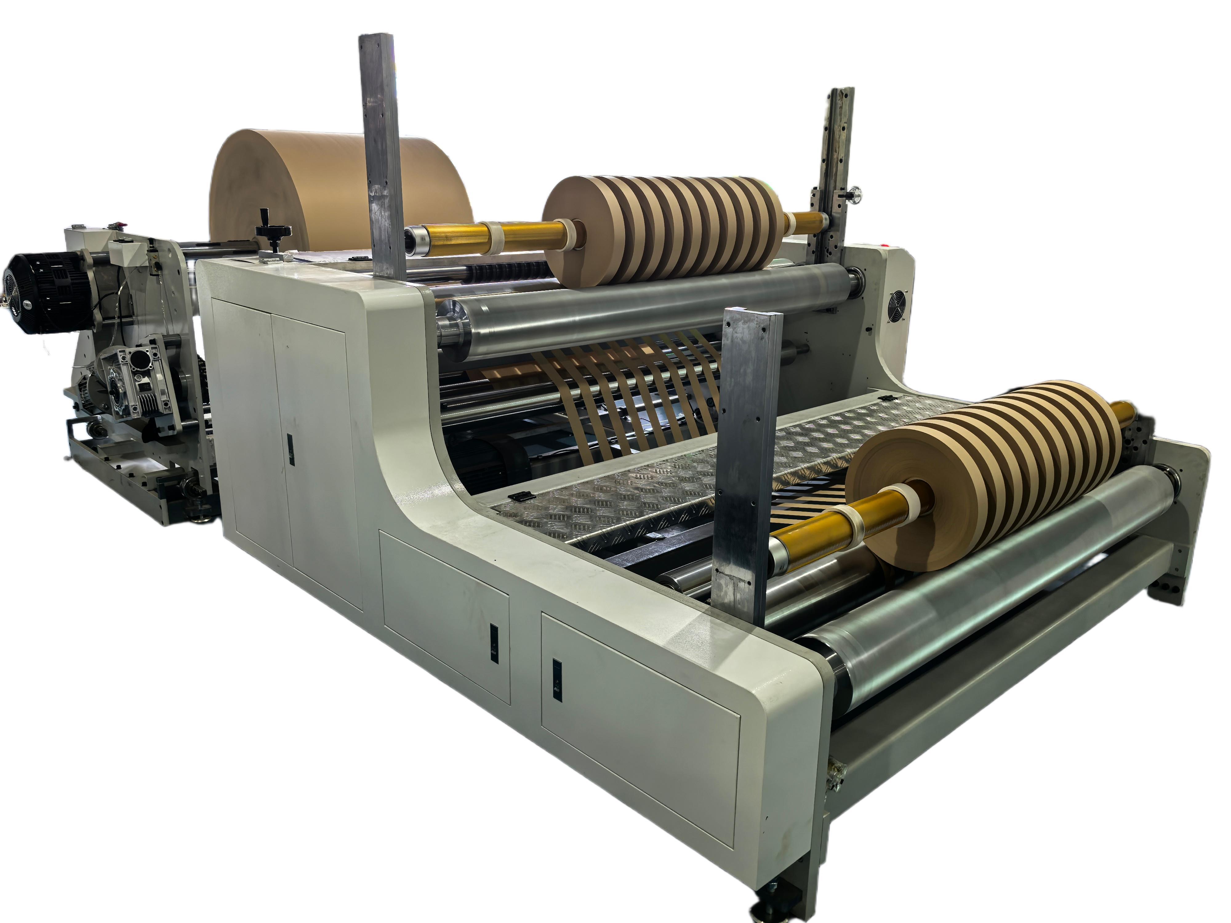 In termini di processo tecnico, la macchina per tagliare la carta 1300G adotta un sistema di controllo automatico della tensione combinato con lame di taglio di precisione per ottenere bordi di taglio puliti e lisci.Il ripiegamento integratoIl sistema di taglio e riavvolgimento assicura un funzionamento sincronizzato, riducendo al minimo le deviazioni del materiale, le rughe e i difetti dei bordi.La macchina supporta una larghezza di lavoro massima di 1300 mm ed è adatta per vari materiali cartacei come la carta kraftUn'adeguata regolazione della larghezza e una gestione della tensione stabile migliorano la consistenza del rotolo finito e riducono gli sprechi di materiale.